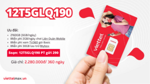 Thông tin gói cước: Tên gói cước: 12T5GLQ190 Cước phí: 2.280.000đ Thời hạn sử dụng: [...]