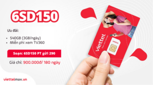 Thông tin gói cước: Tên gói cước: 6SD150 Cước phí: 900.000đ Thời hạn sử dụng: [...]